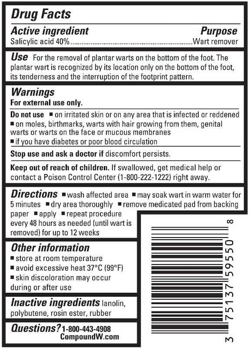 Compound W Plantar Verruca Wart Remover Foot Pads Uk Kingdom States